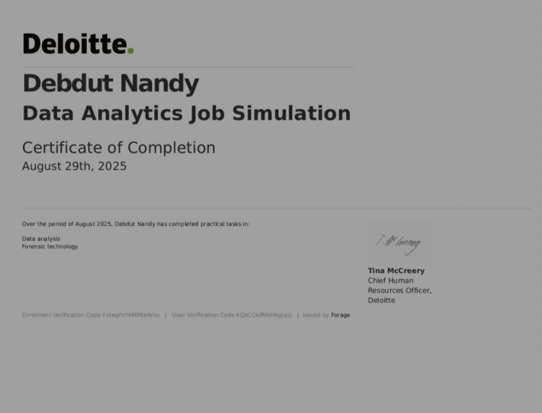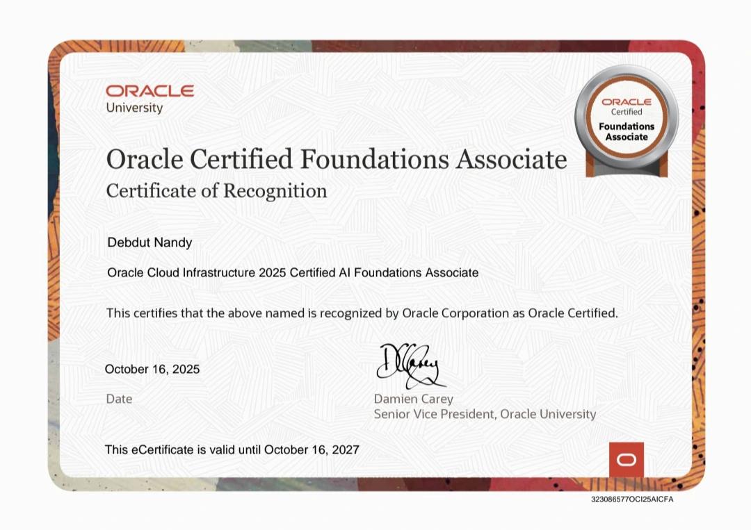 I'm Debdut Nandy, a passionate coder and problem solver with a keen interest in Artificial Intelligence, Machine Learning, and Data Analytics.
